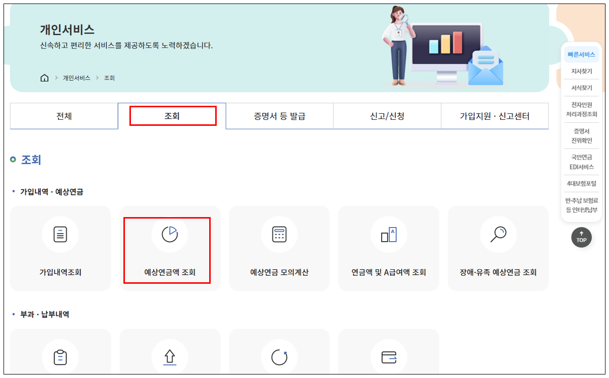 - 국민연금공단 홈페이지>전자민원>개인인증>개인로그인>조회>가입내역조회