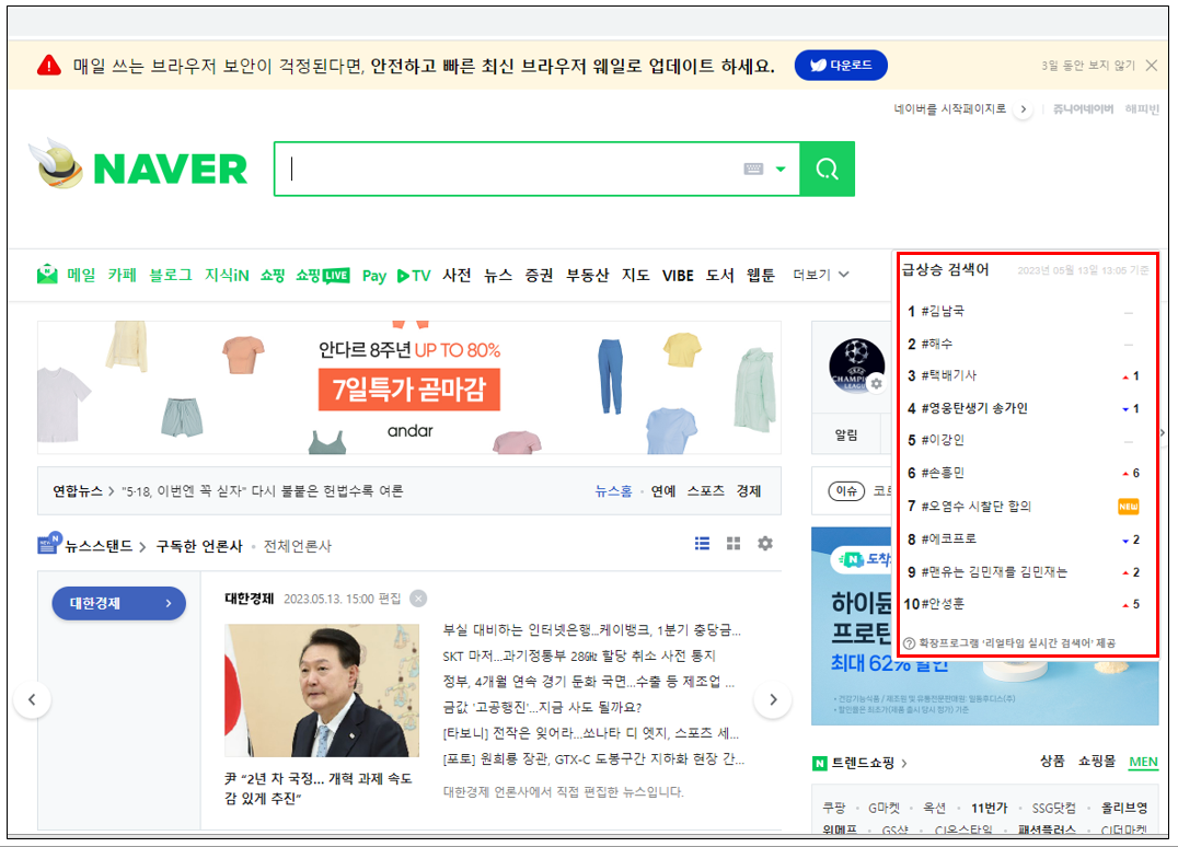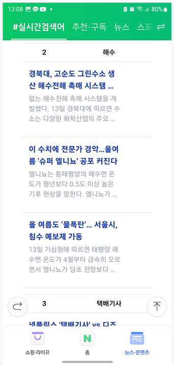 네이버 메인에#실시간검색어추가