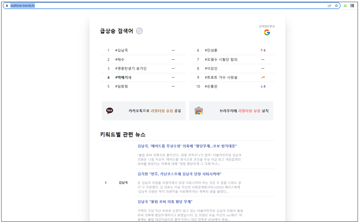 웹페이지 주소 https://realtime-trends.kr/ 입니다.