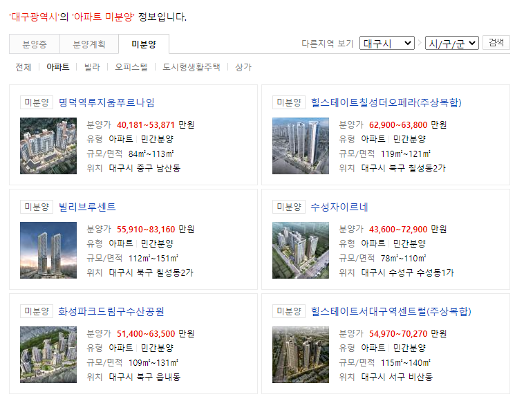 따라서 미분양 아파트별 상세한 정보를 알고 싶다면 다음의 방법이 더욱 효과적이다.