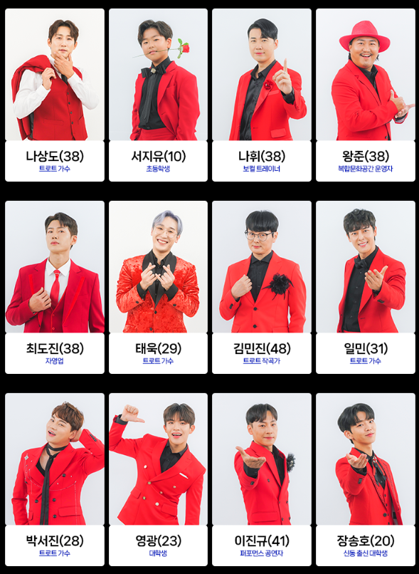 전설의 트로트 영웅에 도전하는 영광의 참가자를 소개합니다.