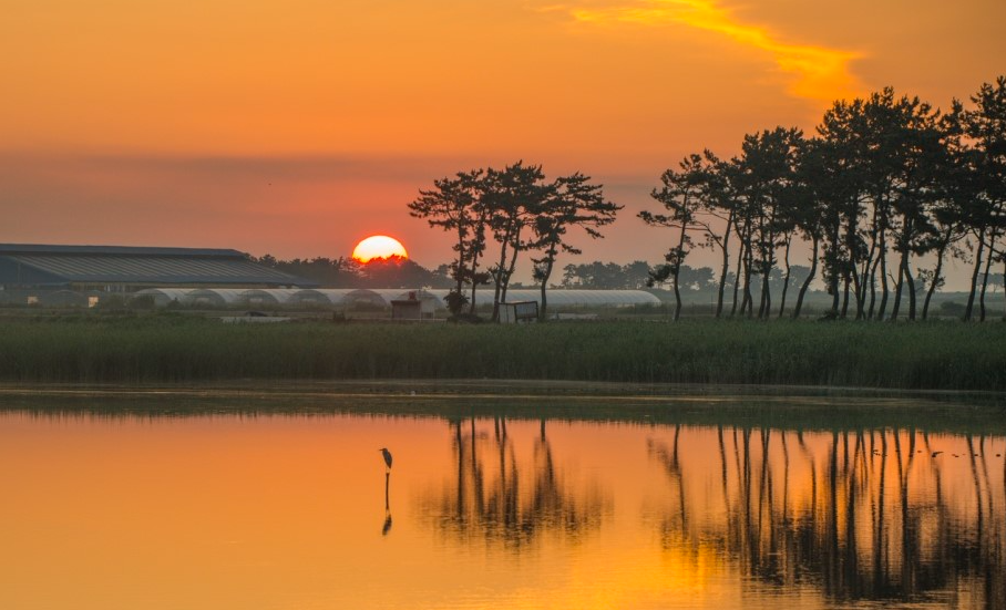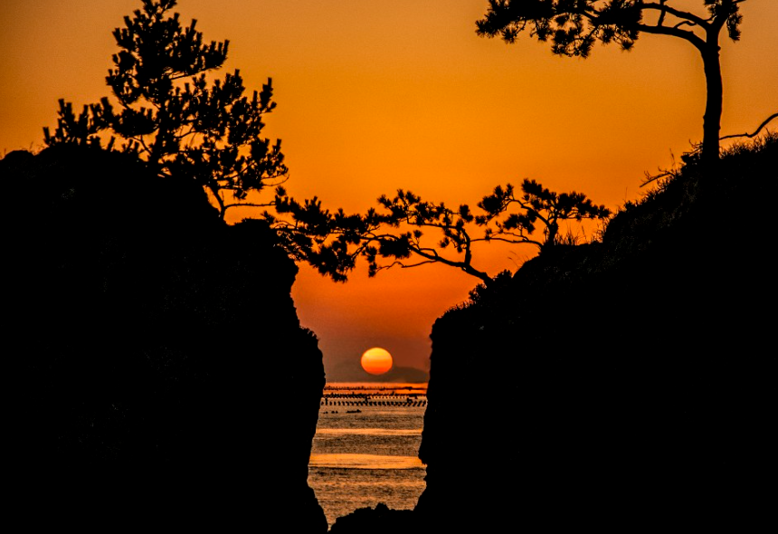 변산반도는 풍광이 아름답기로 소문난 곳인만큼 곳곳에 일출/일몰 명소가 있지만, 그중에서도 계화도 일출이 최고라고 생각한다. 서해에 위치한 만큼 수평선 위를 솟아오르지는 않지만 계화도에서 멀리 나무 위로 떠오르는 태양을 보고 있자면 숨이 멎을 정도이다. 모든 것은 정지되어 있고 떠오르는 태양만 움직이는 듯한 숨막히는 절경에 감탄하게 될 것이다.