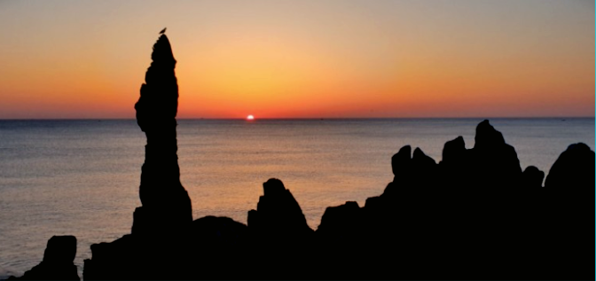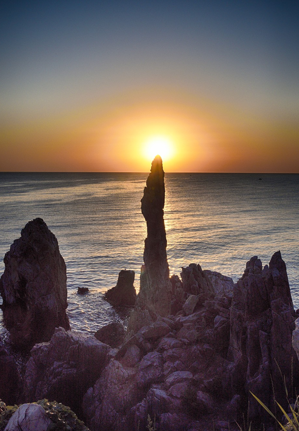 강원도 동해시 추암 해수욕장 근처 해안의 추암 촛대바위. 바다에서 솟아 오른 형상의 기암괴석의 모양이 촛대를 닮아 촛대바위라고 불린다. 촛대바위 주변으로 약 10여 척의 기암괴석 사이로 떠오르는 붉은 해의 절경이 압권이다. 사진 찍는 위치와 타이밍을 잘 잡으면 아래 사진처럼 촛대 위의 촛불처럼 태양이 촛대에 올려진 듯한 사진을 찍을 수 있다.