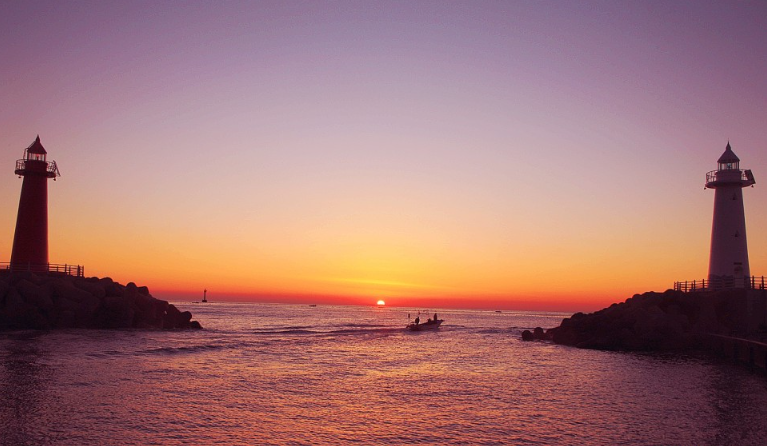 해운대는 워낙 유명하니 별도의 설명이나 위치정보는 필요 없겠지만, 일출은 청사포에서 바라보는 일출이 가장 아름답다고 알려져 있다. 양쪽 등대 사이로 떠오르는 태양과 그 사이로 지나가는 고깃배의 아름다운 정경은 한 폭의 그림이다.