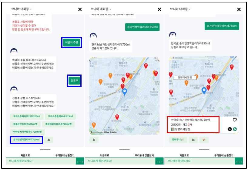 - 세븐일레븐 앱설치→회원가입/로그인→우리동네 상품 찾기→이달의 주류→전통주→송가인생막걸리어라750ml