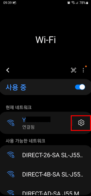 1. 와이파이 설정으로 들어갑니다. 그런 다음 톱니바퀴를 누르세요.