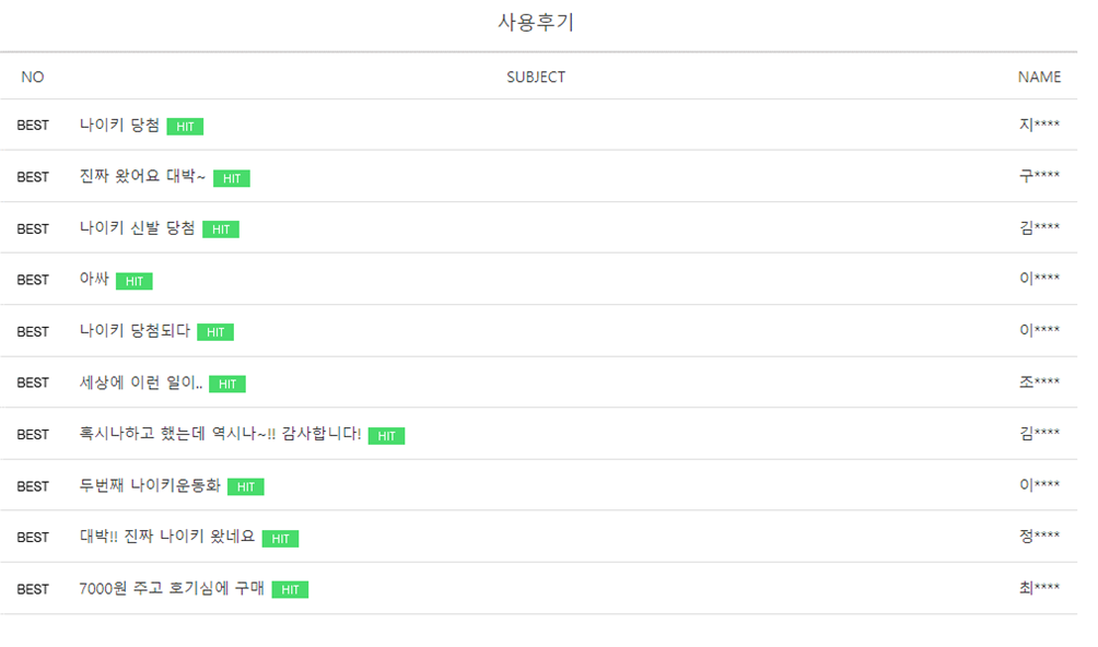 나이키 명품신발 받았다는 best후기들을 상단에 배치해서 대박이라고 하네요. 그럴듯 하죠?