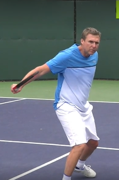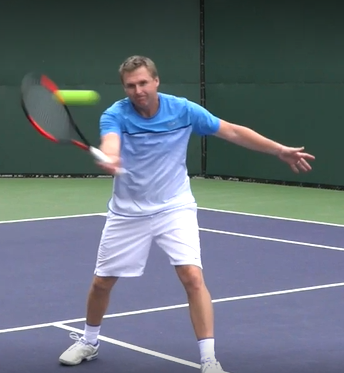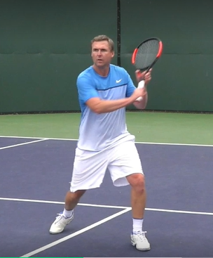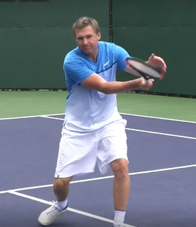 먼저 스탠스를 취한 후 왼발을 뒤로 빼며 체중을 오른발 쪽으로 옮겨줍니다. 이후 상체를 오른쪽으로 회전시키며 동시에 양팔을 뻗어주며 라켓헤드를 뒤쪽으로 당겨줍니다. 다음으로 팔꿈치를 굽히며 라켓을 아래로 내리고 몸통회전을 이용해 타구 방향으로 밀어줍니다. 끝으로 팔로우스루 동작을 취하며 마무리해 줍니다. 라켓을 잡은 손과 잡지 않은 손이 맞닿으며 동작을 마무리해야 깔끔한 스윙이 완성됩니다.