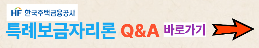 특례보금자리론 관련 자주 묻는 질문과 답변 위와 같이 간략하게 정리하였습니다. 한국주택금융공사 홈페이지를 방문하시면 궁금 사항에 대한 더욱 많은 질문과 답변을 보실 수 있습니다. 아래 링크 통해 해당페이지로 안내드리겠습니다.