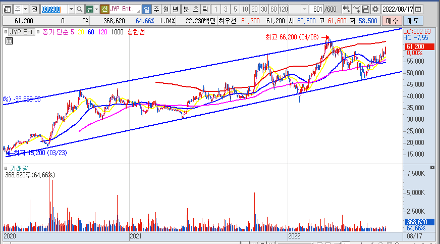 중장기적으로는 K-엔터 최대호황이라는 현상황과 3분기 최대실적 기대감과 향후 몇년간의 K팝 최전성기의 분위기를 고려한다면 8만원을 목표로 설정하고 계좌운영할 예정이다.