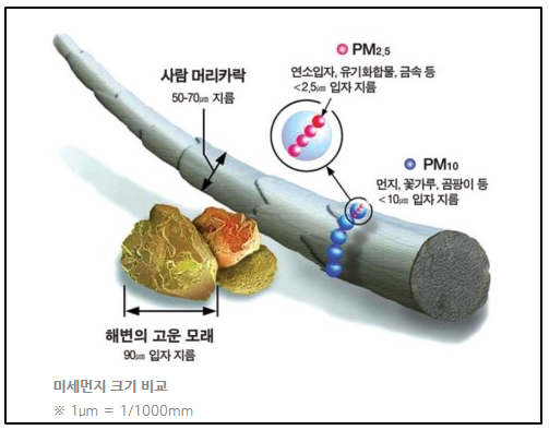 미세먼지 크기 비교 (출처 : NAVER지식백과)